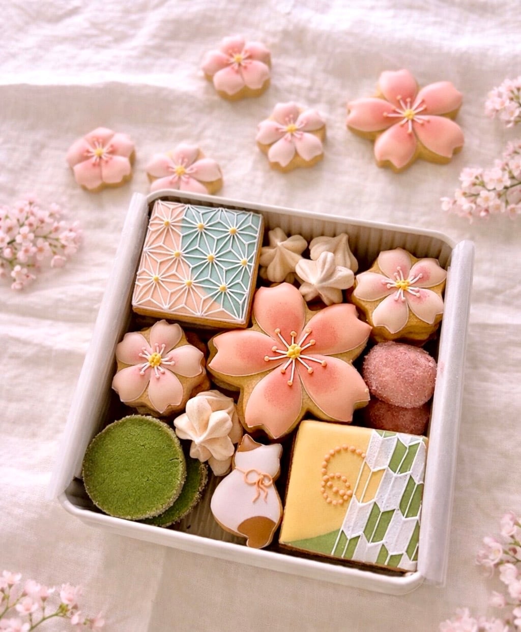 可愛らしい桜の形のクッキーたちが、心温まるひとときを演出します。